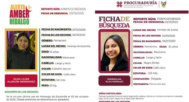 Fue la Procuraduría General de Justicia del Estado de Hidalgo (PGJEH) quien emitió la alerta con el folio FDBHGO/428/2025 y en ella describió que la persona se encontraba en el municipio de Omitlán, perteneciente a la llamada Comarca Minera. En la descripción, ella portaba un pijama gris.