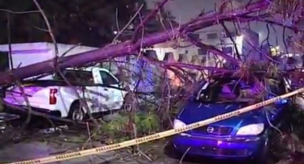 A su paso, el pesado árbol derribó parte de la barda y cayó sobre 2 vehículos estacionados. No se reportaron personas lesionadas y las áreas municipales se mantienen en vigilancia permanente ante los efectos de las lluvias recientes.
