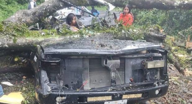 ACAXOCHITLÁN.- Las lluvias torrenciales en Hidalgo han causado estragos en diferentes vialidades de la entidad. Sobre la carretera Acaxochitlán–Venta Quemada la circulación fue cerrada derivado de un accidente donde un árbol cayó sobre una camioneta que circulaba en la zona, aplastando en su totalidad el toldo.