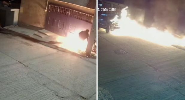 El sujeto, que solo se alcanza a ver viste chamarra y pantalones oscuros huye para desaparecer del lugar de los hechos. Los afectados denunciaron a los números de emergencias. Elementos de protección civil y bomberos se trasladaron para sofocar las llamas.