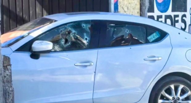 Por el ataque, el conductor perdió el control de su vehículo, un Mazda de color blanco, el cual terminó impactando en el zaguán de una vivienda sobre la avenida Francisco I. Madero, frente a una farmacia.