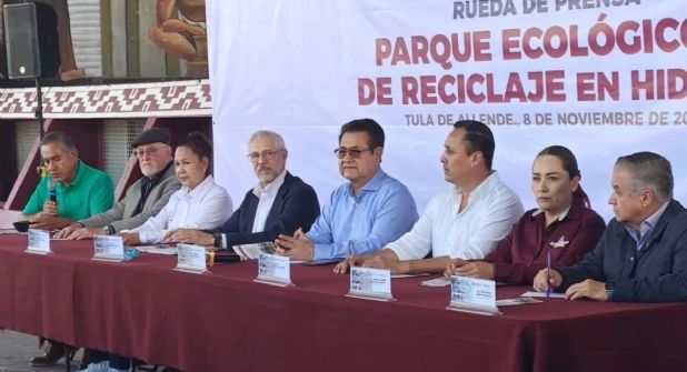 En conferencia de prensa, encabezada por el secretario de Gobierno, Guillermo Olivares Reyna, y el subsecretario de Fomento y Normatividad Ambiental de la Semarnat, José Luis Samaniego Leyva, presentaron el proyecto del Parque Ecológico y de Reciclaje de Tula, con el que se busca transformar el actual tiradero regional en un espacio ecológico y productivo.