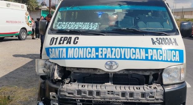Epazoyucan.- Al menos 5 personas resultaron lesionadas por el choque de una Urvan del transporte público. El accidente ocurrió a la altura de la entrada de la comunidad Xolostitla, en el municipio hidalguense Epazoyucan. Elementos de emergencia atendieron el llamado y realizaron el traslado de los afectados a un hospital.