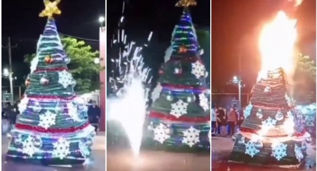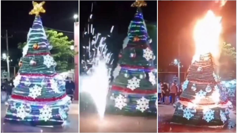 En segundos, el árbol de Navidad quedó envuelto en llamas