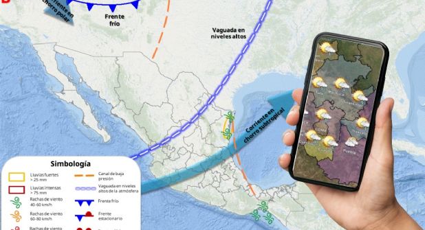 Pachuca.- Un canal de baja presión en el oriente y sureste del territorio nacional en interacción con una vaguada en altura sobre el noreste del país, la corriente en chorro subtropical y el ingreso de humedad del océano Pacífico y golfo de México, ocasionarán lluvias y chubascos en estados del norte, centro y sur de la República Mexicana.