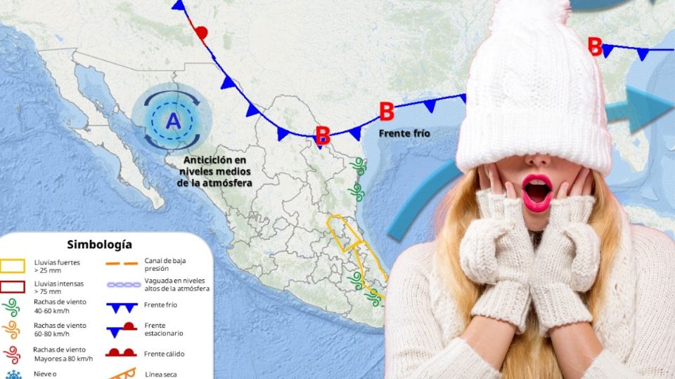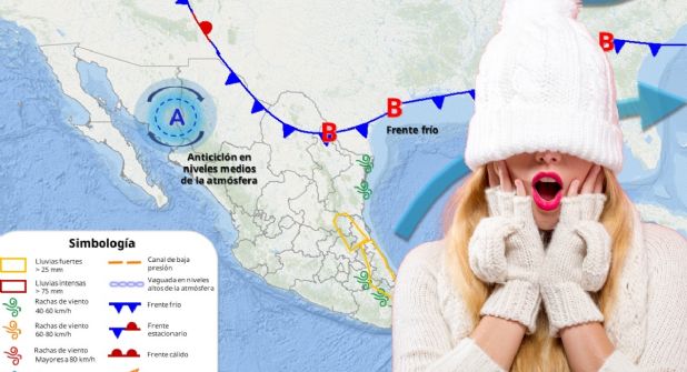Se prevén lluvias fuertes a puntuales muy fuertes en regiones del estado de Hidalgo. Por otra parte, el frente frío número 22 se extenderá sobre el norte de México, ocasionando fuertes rachas de viento. Finalmente, un anticiclón en niveles medios de la atmósfera, propiciará condiciones de tiempo estable y sin lluvia sobre entidades del norte, noroeste y occidente del territorio nacional, lo que ocasionará un ascenso de las temperaturas vespertinas, sin embargo, persistirá ambiente frío a muy frío durante la madrugada y mañana.
