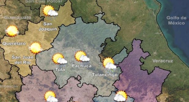 Por regiones, en Hidalgo el pronóstico del clima es el siguiente: en Pachuca, se espera un domingo mayormente soleado, con una temperatura máxima de 20 grados Celsius y mínima de 9 grados, una probabilidad de precipitaciones del 0 por ciento, humedad del 52 por ciento y viento de 11 kilómetros por hora.