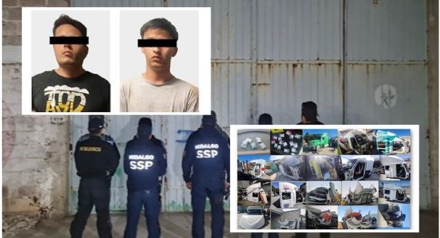 TULANCINGO.- Por error, dos hombres revelaron a las autoridades del estado de Hidalgo una bodega en la que al parecer se dedicaban al desmantelamiento de tráileres que probablemente habían sido robados en las carreteras federales, por lo que fueron arrestados y serán procesados penalmente.