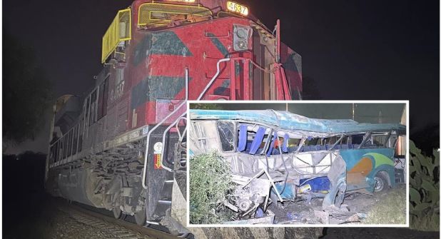 ATITALAQUIA.- En video quedó registrado el momento en el que un tren embistió de manera brutal a autobús de pasajeros y debido a la velocidad que llevaba lo arrastró por varios metros en el municipio de Atitalaquia, localizado al sur del estado de Hidalgo, lo que generó movilización de las autoridades.