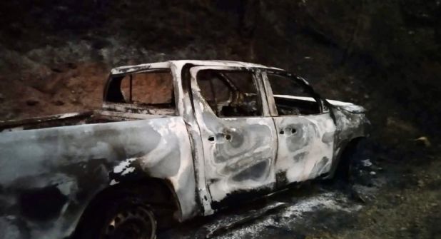 NICÓLAS FLORES. Completamente calcinada, quedó una camioneta de la Secretaría del Medio Ambiente y Recursos Naturales del Estado de Hidalgo (Semarnath) donde se trasladó un grupo de brigadistas en auxiliar a las labores para sofocar el incendio forestal que se registra en el municipio hidalguense Nicolás Flores. De acuerdo con los primeros reportes, la unidad se dirigía a la zona de Villa Juárez y fue alcanzada por las fuertes llamas.