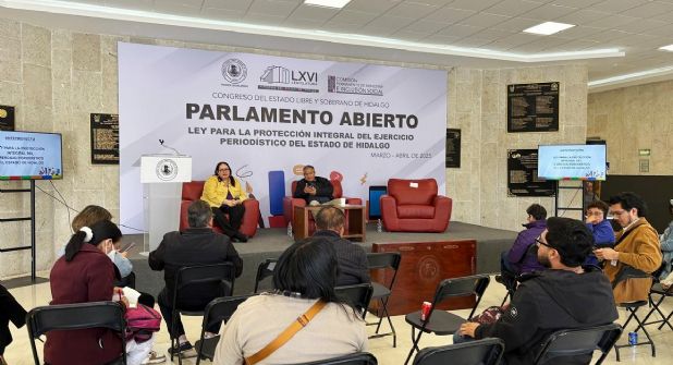 PACHUCA. - Periodistas hidalguenses analizaron el anteproyecto de Ley para la Protección Integral del Ejercicio Periodístico del Estado de Hidalgo, debatieron y aportaron ideas durante el primer parlamento abierto con el gremio, realizado en el lobby del salón de plenos del Congreso de Hidalgo.