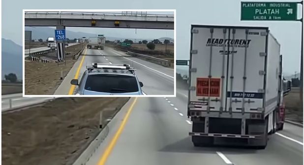 Otro operador captó a la distancia que un tráiler blanco con rojo y una caja seca de la empresa Ready Torrent hacía un brusco zigzagueo, que dijo es se conoce como “gusaneo”, sobre el Arco Norte cerca del crucero con la autopista México-Pachuca, en el kilómetro 127 en Tolcayuca, Hidalgo.