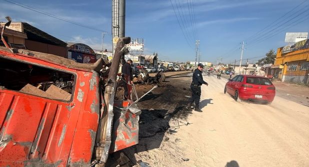 Pues a la distancia el Torton circulaba a gran velocidad e impactó la base de la torre, lo que movió los cables; debido a su impulso, atravesó los carriles contrarios y se dirigió a una casa, justo cuando un ciclista iba por el acotamiento y fue impactado por la unidad; finalmente, todo quedó en una nube de polvo.