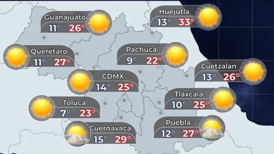 Para el estado de Hidalgo, el ambiente será frío durante la mañana y noche, con posibles heladas al amanecer. Para las zonas altas y montañosas se prevén temperaturas mínimas de -5 a 0 grados. Zacualtipán, Tulancingo, Apan, Tizayuca, Actopan, Tepeapulco y Pachuca, son algunos de los municipios hidalguenses que registran las temperaturas más bajas en la entidad.