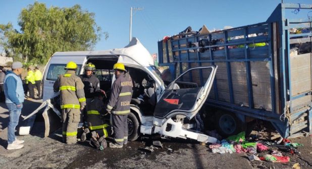 El fuerte choque ocurrió entre un camión recolector de basura y una combi acondicionada para el transporte público. Los pasajeros resultaron gravemente lesionados, e incluso se informó 5 de ellos murieron en el lugar. El reporte es preliminar, y en el sitio se encuentra el cuerpo de seguridad pública y protección civil para llevar a cabo las diligencias correspondientes y dar a conocer el saldo oficial.