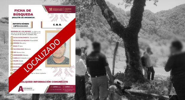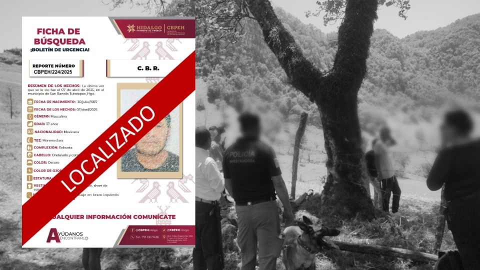 SAN BARTOLO TUTOTEPEC.- La Comisión de Búsqueda de Personas del Estado de Hidalgo (CBPEH) confirmó la localización de una de las personas desaparecidas a inicios de este abril. Lamentablemente, el hombre de 37 años de edad identificado con el nombre Cecilio B.R fue hallado muerto. Las autoridades abrieron la carpeta de investigación para esclarecer las causas de la muerte; mientras familiares piden justicia.