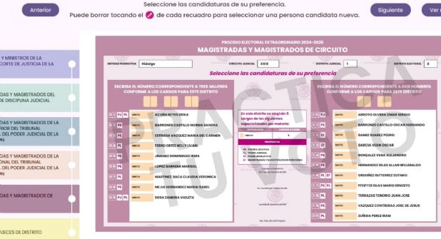 En el caso de Hidalgo, la boleta rosa contendrá 20 nombres de nueve mujeres y 11 hombres candidatos a ser magistrados de Circuito, de los cuales tres están destinados para ser ocupados por mujeres y dos por hombres.