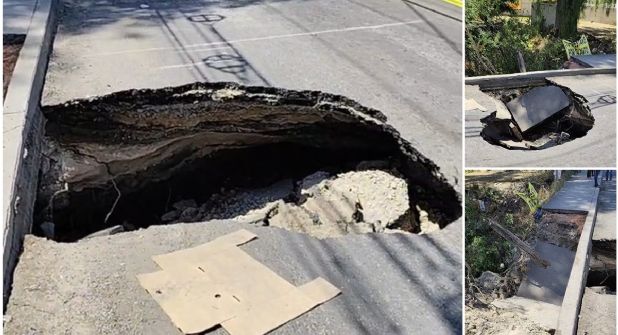 Por la mañana de este lunes 12 de mayo los conductores notaron que sobre uno de los carriles apareció un enorme socavón que de inmediato compararon con el tamaño de un refrigerador de casa, por lo que se alarmaron y decidieron pedir auxilio con reiteradas llamadas al número de emergencias 911.