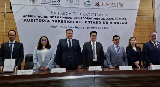 Pachuca, Hgo. – La Unidad de Laboratorio de Obra Pública de la Auditoría Superior del Estado de Hidalgo (ASEH) recibió la acreditación bajo la Norma ISO/IEC 17025, otorgada por la Entidad Mexicana de Acreditación (EMA), consolidando su capacidad técnica para realizar ensayos que fortalezcan los procesos de fiscalización de inversiones físicas en la entidad.
