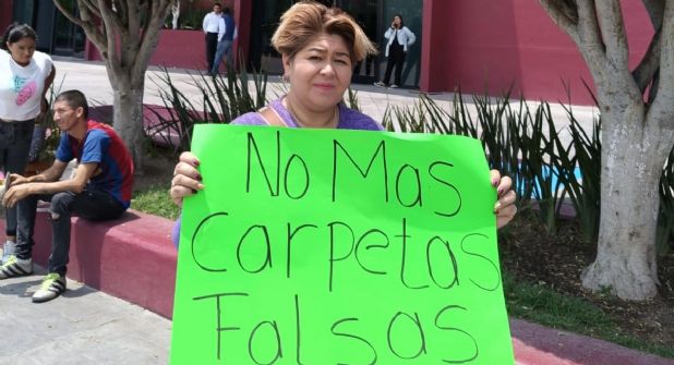 Pachuca.— Desesperada y con una cartulina en las manos, frente al Palacio de Gobierno, Mónica Barbosa pide a las autoridades de procuración de justicia y judiciales que cesen el proceso penal en contra de su hermano, a quien considera injustamente acusado de un delito.