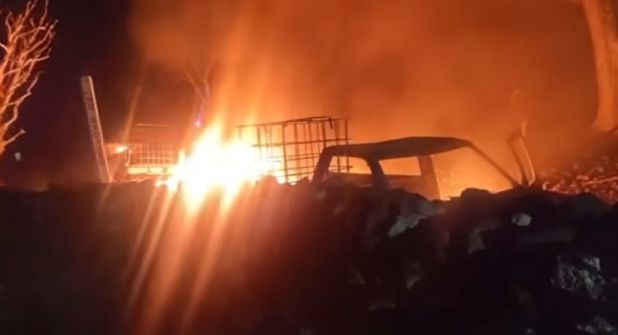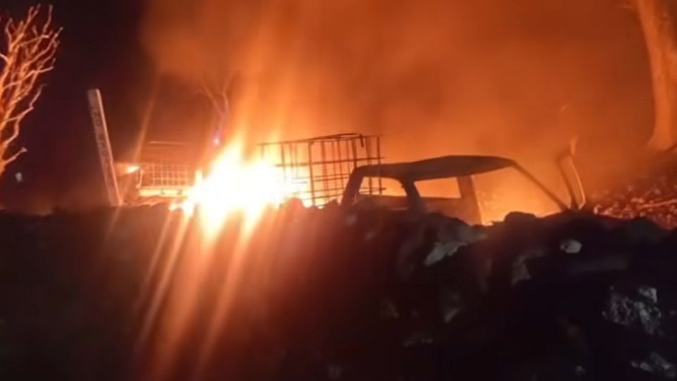 Las alertas se encendieron alrededor de la 1 de la mañana. Elementos de seguridad pública y protección civil se trasladaron a la zona del desastre, donde localizaron la toma clandestina con una fuga. En el lugar había 4 camionetas en llamas, las cuales transportaban contenedores de los usados para el robo de combustible.