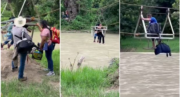 La arriesgada maniobra que prácticamente deben repetir diariamente algunas personas para llegar hacia sus respectivos destinos, fue grabada en video y compartida en las redes sociales, donde se hizo viral entre internautas, pues es muy sorprendente la manera en la que se usó el ingenio para sortear el afluente.