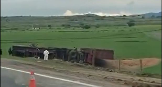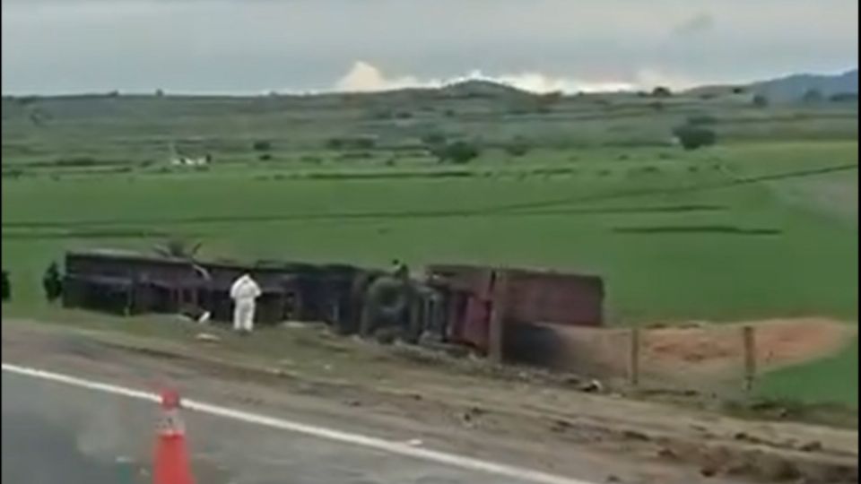 En el sitio confirmaron un tráiler de color rojo con placas 56AY9W, acoplado a dos remolques con matrículas 56UP9X y 57UP9X, la cual se encontraba fuera del camino visiblemente dañada. Los agentes resguardaron la zona y comenzaron a realizar el levantamiento de pruebas para conocer las causas del accidente.