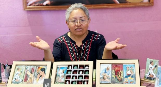 Pachuca.— Entre aromas intensos de cacao y diseños que parecen salidos de un lienzo, la chocolatería artesanal La Hija del Fuego, fundada por Braulia Leonor Rodríguez Galloso, presentó su nueva colección “México en Cacao”, una serie de barras pintadas a mano que evocan escenas, oficios y costumbres que forman parte de la identidad cultural del país.