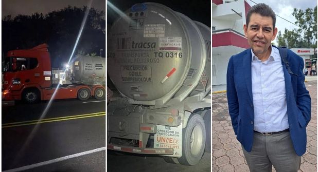 TULA DE ALLENDE.- Con miles de litros de presunto huachicol, es decir, gasolina de procedencia ilegal, fue como la Fiscalía General de la República (FGR) logró asegurar una pipa ligada al actual regidor en Tula de Allende Noé Paredes Meza, además de que se arrestó al conductor.