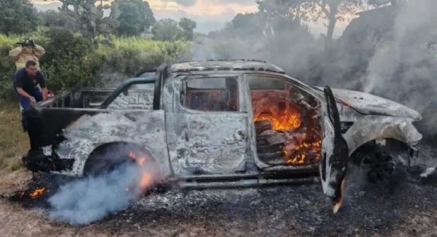 Al llegar al sitio, confirmaron había una camioneta Ford Ranger, placas MGN-886-A, consumida por el fuego. Durante las labores de enfriamiento, detectaron el cuerpo de un hombre que yacía sobre un costado del vehículo. Al momento de la revisión confirmaron, el cadáver presentaba quemaduras y las manos atadas.