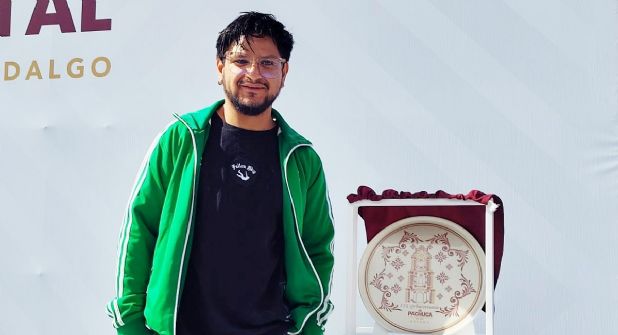 Pachuca.- En el marco del Grito de Independencia, el Ayuntamiento de Pachuca develó un plato para celebrar el aniversario del monumento más representativo de la ciudad. La imagen de reloj entre bordados fue creada por Giovanni Martínez, un joven artista originario de la Bella Airosa y egresado de la Universidad Autónoma estatal.