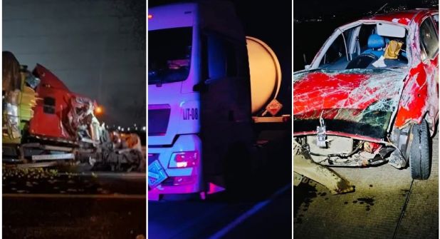 No obstante, por causas hasta el momento desconocidas dos camiones de carga, un Torton con caja seca que transportaba toneladas de cítricos, junto a un tráiler atorado a un remolque tipo salchicha, chocaron entre sí y hubo un tercer involucrado, aunque de menor tamaño, pues fue el Pontiac Matiz citado.