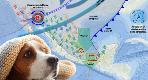 El Servicio Meteorológico Nacional de la Comisión Nacional del Agua (Conagua) advirtió también sobre un marcado descenso de las temperaturas además de evento de “Norte” intenso y oleaje elevado en el litoral del golfo de México, con rachas de viento de 100 a 120 kilómetros por hora en la costa de Veracruz.