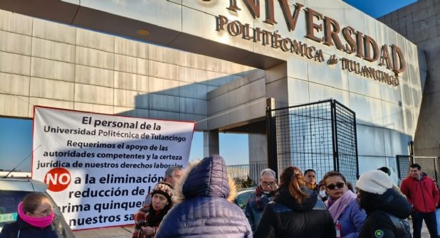 Tulancingo.- La mañana de este viernes, trabajadores de la Universidad Politécnica de Tulancingo (UPT) bloquearon el acceso principal a las instalaciones de la institución educativa, como medida de presión para exigir el respeto a sus derechos laborales, así como el pago completo de la prima quinquenal, sueldos y prestaciones que, aseguran, han sido afectados por decisiones administrativas recientes.