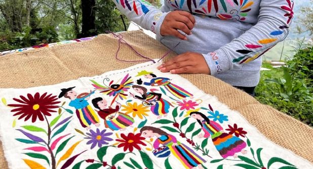 Desde la página de Facebook Orgullosamente Hidalguense se compartió una imagen dividida en dos vistas, siendo la parte izquierda una almohada que puede apreciase fue hecha tras largas horas de trabajo de artesanos, quienes cuidaron muchos detalles e incluso al palparla se sienten los relieves bordados.