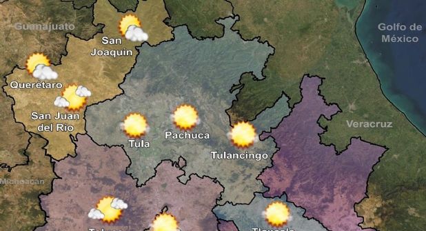 Por regiones, en Hidalgo el pronóstico del clima es el siguiente: en Pachuca, se espera un domingo parcialmente soleado, con una temperatura máxima de 20 grados Celsius y mínima de 7 grados, una probabilidad de precipitaciones del 15 por ciento, humedad del 43 por ciento y viento de 13 kilómetros por hora.