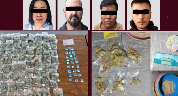 En el primer operativo, en Tula de Allende, se aseguraron 3 hombres, dos de 34 años de edad y uno de 47 años, quienes se encontraban en posesión de 800 dosis de hierba verde con características propias de la marihuana y 260 más de presunto cristal.