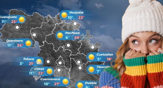 Para el estado de Hidalgo, el cielo estará parcialmente nublado durante el día. Por la mañana, se espera un ambiente frío a fresco con bancos de niebla en la región, así como un ambiente muy frío y posibles heladas en zonas serranas con temperaturas de -5 a 0 grados Celsius.