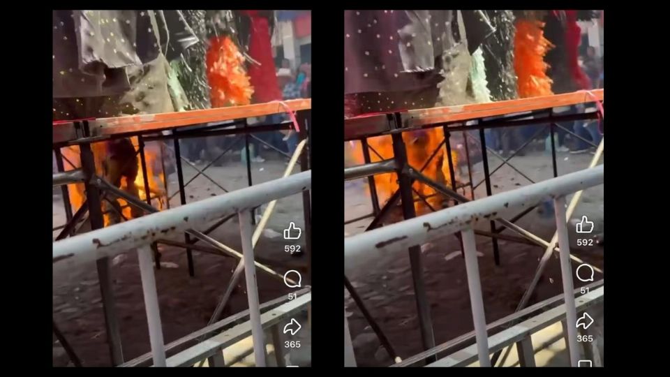 De acuerdo con testimonios, un “torito” de pirotecnia alcanzó la vestimenta de la joven, misma que se caracteriza por estar hecha a base de rafia y lo que facilitó que el fuego se extendiera rápidamente por todo su cuerpo, dejando quemaduras de primer y segundo grado, a ella y dos personas más que intentaron ayudarla a combatir el fuego.