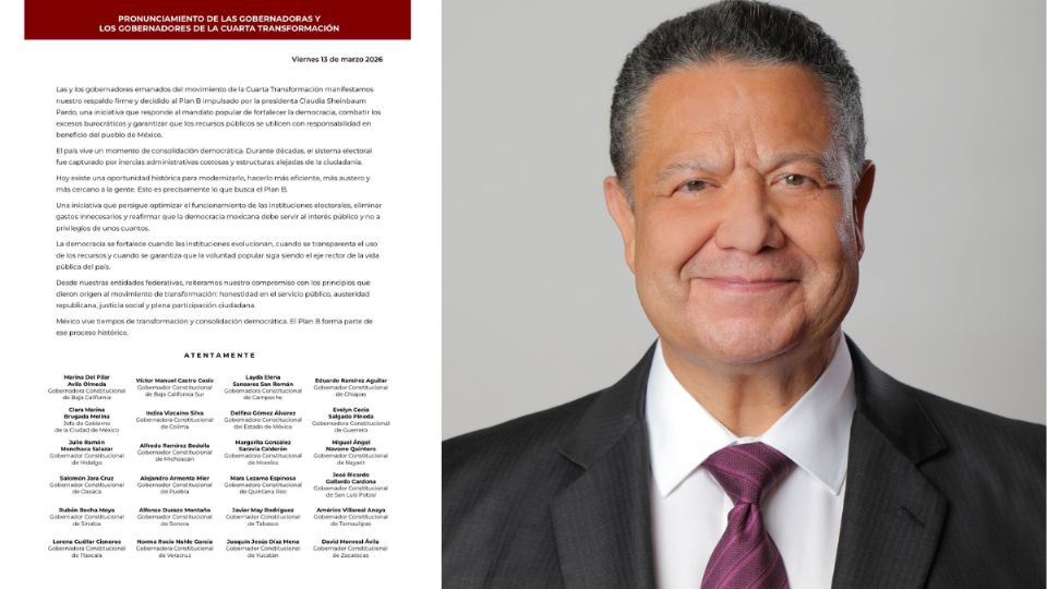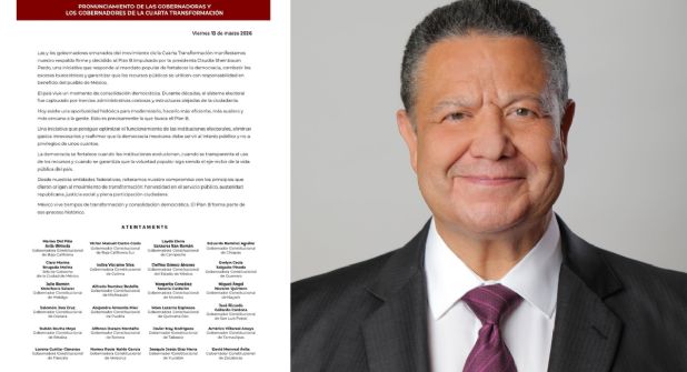 Los gobernadores que se unieron a la firma en favor del Plan B señalaron que consideran esta iniciativa como una oportunidad para actualizar el marco institucional que regula la vida democrática del país, de manera que las elecciones continúen desarrollándose bajo principios de legalidad, transparencia y participación ciudadana.