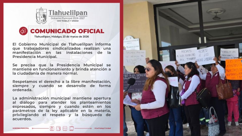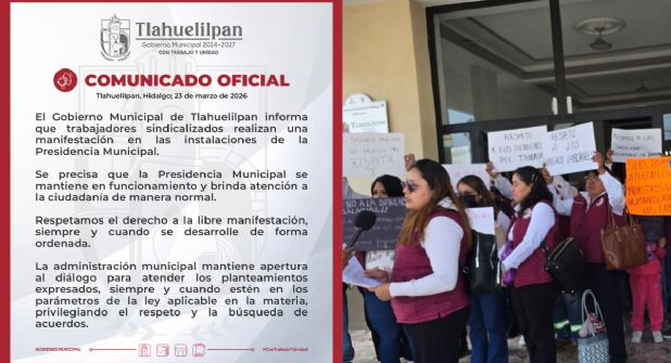 Frente a la movilización, el Gobierno Municipal de Tlahuelilpan emitió un comunicado oficial en el que confirmó que trabajadores sindicalizados realizan una manifestación en la Presidencia Municipal.