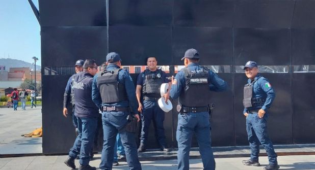 La mañana de este domingo, alrededor de las 10:00 horas, un camión sin rótulos llegó a las inmediaciones de Plaza Independencia en el centro de Pachuca, donde agentes de la Policía Municipal ya tenían el cercado del Reloj Monumental abierto para que más de 100 policías mujeres pudieran ingresar para resguardar el monumento.