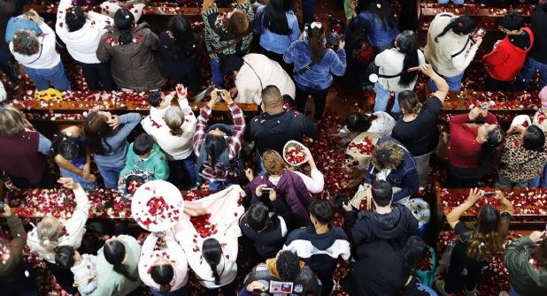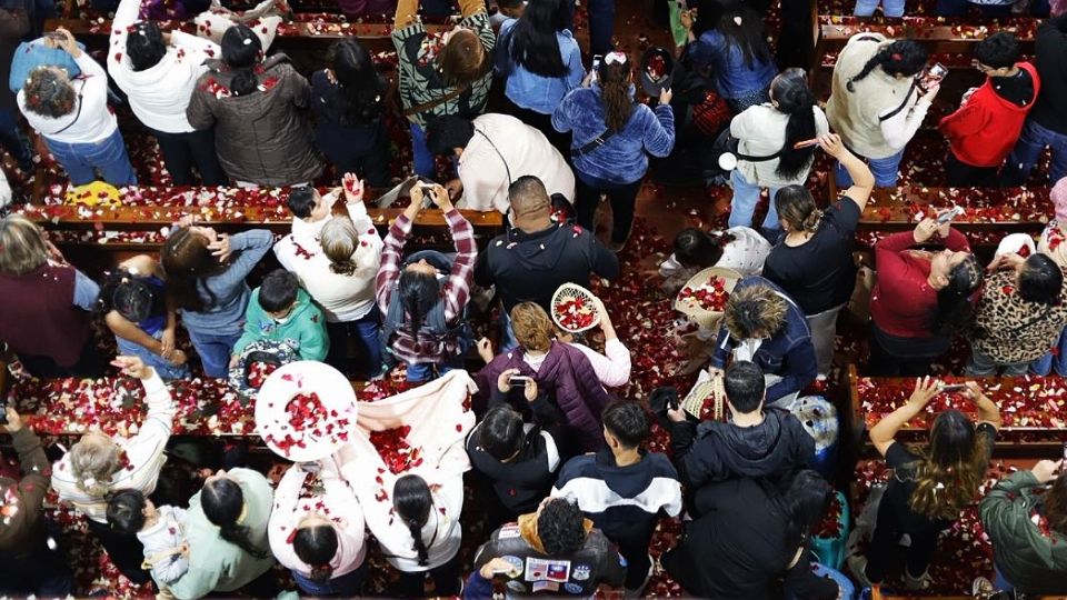 Cabe destacar que, por segundo año consecutivo, la caída de pétalos también se realizó en la parte exterior del recinto religioso, permitiendo que quienes no lograron ingresar pudieran disfrutar de la experiencia.