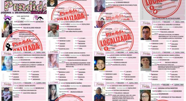 PACHUCA.- En lo que va de 2019, el movimiento Sonrisas Perdidas Hidalgo, reportó un total de 155 fichas de personas desaparecidas en el estado, de los cuales más de la mitad son mujeres, esto en un conteo de reportes que hizo LSR Hidalgo en la página de Facebook de dicha organización.