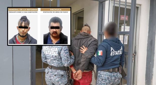 PACHUCA.- Por portación ilegal de armas y allanamiento de morada, dos personas fueron detenidas por elementos de la Secretaría de Seguridad Pública de Hidalgo, en la zona metropolitana de Pachuca.