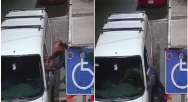 Con sus manos, empujó el cristal de la puerta del chofer, la fuerza fue tal que logró estrellar el vidrio, pero volvió a aparentar que caminaba. No obstante, regresó a la camioneta y con una barra de metal terminó de desprender el cristal para entrar a la cabina de la camioneta. Metió la mitad de su cuerpo para llegar al asiento del copiloto, donde se encuentra el compartimiento del tablero.