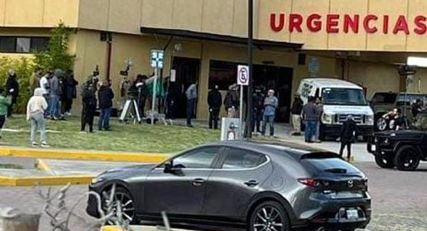 Actores, cámaras, luces, vehículos y demás elementos que fueron colocados en la entrada del Hospital Español, por donde son realizadas las recepciones de urgencias médicas; acciones que estará efectuando la casa productora en Pachuca para poder grabar el material que requiere y posteriormente juntarlo con otras locaciones.