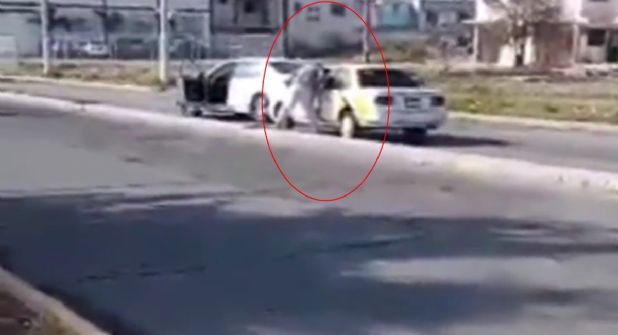 Con violencia el hombre del auto blanco también reta al taxista a que se baje del vehículo y se agarren a golpes. La persona que graba a lo lejos corta la transmisión, por lo que se desconocen los detalles de este suceso.