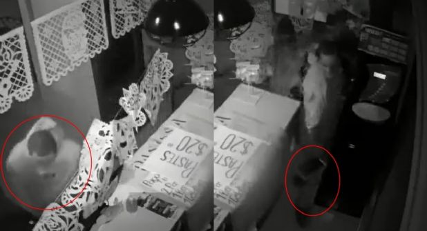 PACHUCA.- En 60 segundos un hombre irrumpe en un local de venta de pastes de la ciudad de Pachuca y huye con el dinero de la caja registradora; esto, según ocurre durante la madrugada de este sábado 12 de noviembre, cuando el sujeto rompe los candados, entra a la tienda, toma el dinero y sale, todo en menos de un minuto, se observa en el video que circula a través de las redes sociales y donde denuncian este delito.