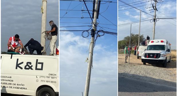 De acuerdo con una serie de imágenes compartidas por medios locales, el hombre es trabajador de la empresa K&B y se encontraba realizando sus labores a la altura del puente de La Noria en Mineral de la Reforma; sin embrago, por accidente en un momento dado tocó con sus manos un cable de luz.